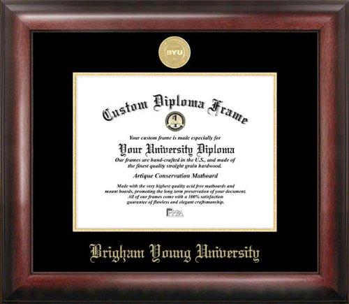 Display your diploma with class and style. Affordable quality University Diploma Frames. Offically licensed collegiate frame classic satin mahogany diploma frame, gold embossed with medallion or foil seal with the official university marks and imprinted with University Name. Custom made to fit any diploma,comes with instructions so you can easily insert your diploma ready to hang. Please contact us if your diploma is a different size so we can cut the opening to fit your document.