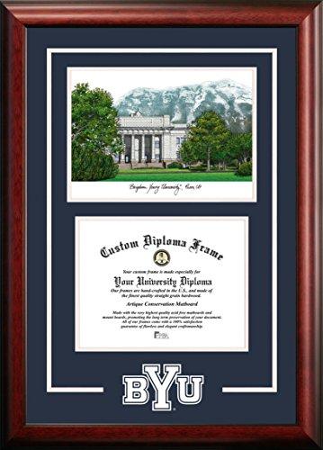 Show your team spirit! Officially licensed collegiate diploma frame with Campus Images lithograph. A classic satin mahogany diploma frame, school logo matting, the matting is in school colors. Custom made to fit any diploma, comes with instructions so you can easily insert your diploma ready to hang. Please contact us if your diploma is a different size so we can cut the opening to fit your document.