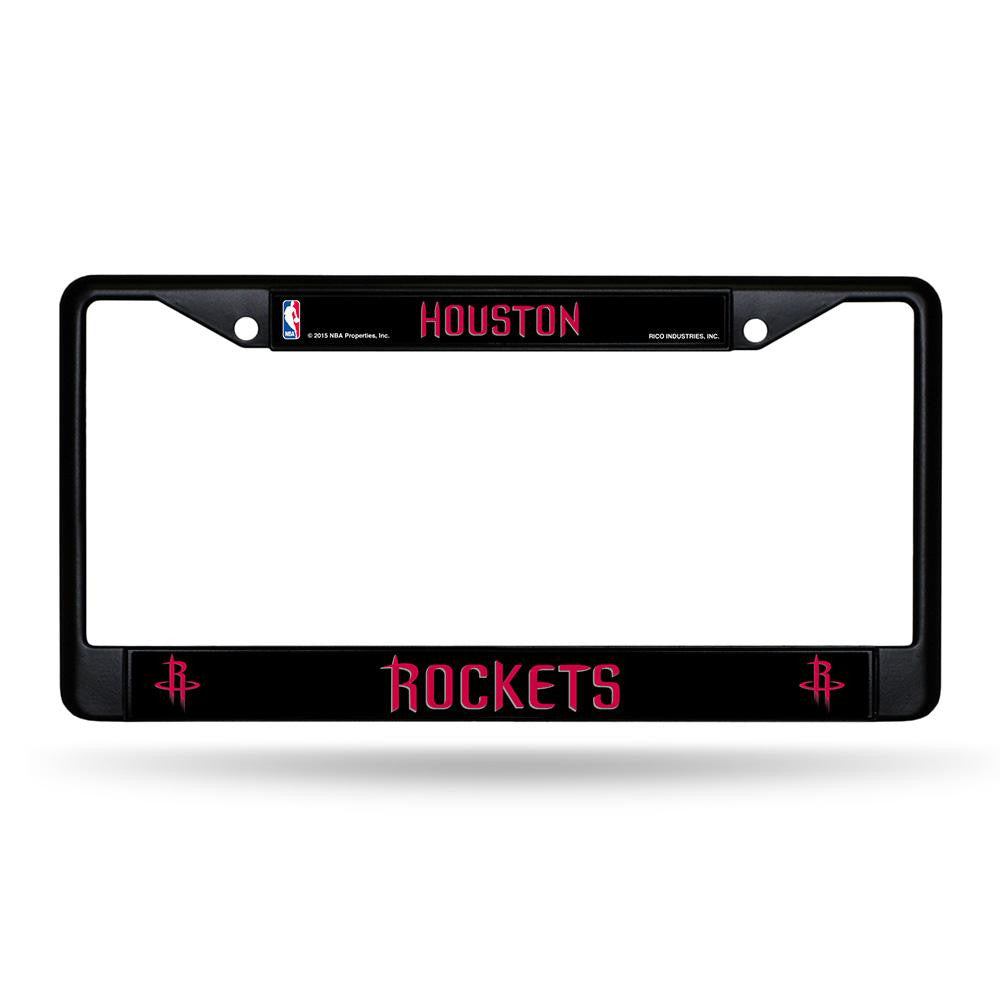 "Show everyone who you root for with this black license plate frame! Features your favorite team's name and logo, and has pre-drilled holes for easy mounting. The chrome frame is very durable and will last for a long time!"