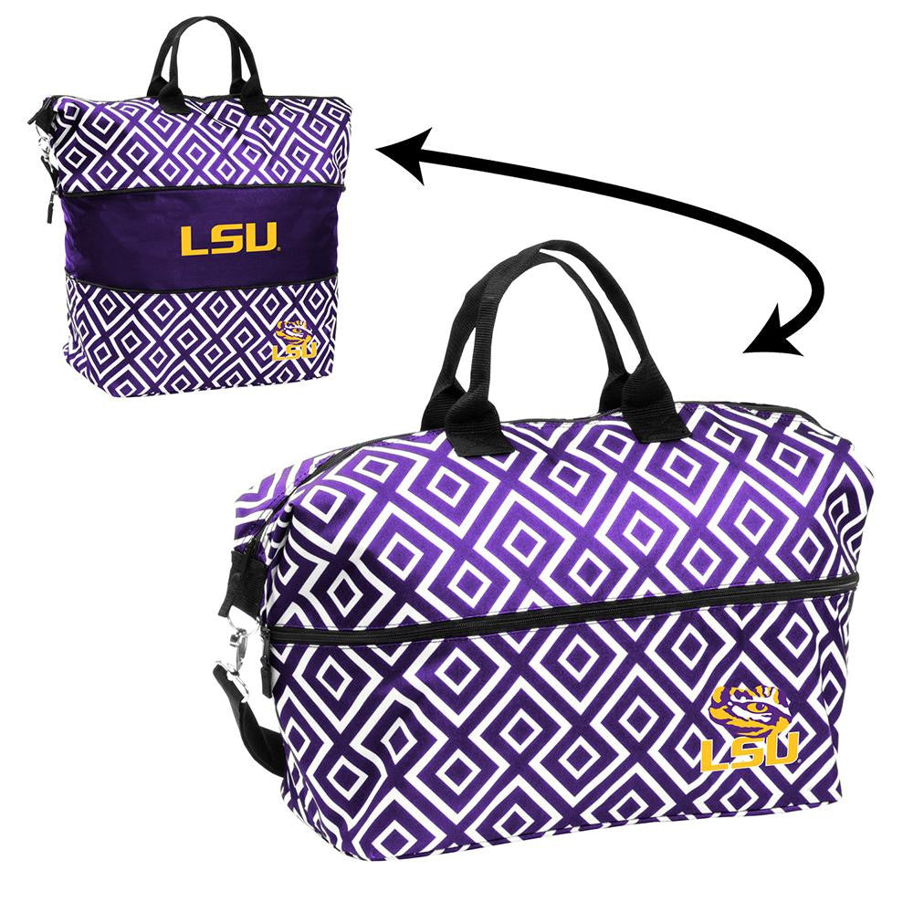 This multipurpose tote is perfect for your weekend adventures. Measuring 25 x 9 x 15 it provides plenty of storage space. Need more space? Just unzip the expandable section and gain an extra 7 inches of storage. This bag features team colored chevron with screenprinted team logos in two separate locations. Shoulder strap included.