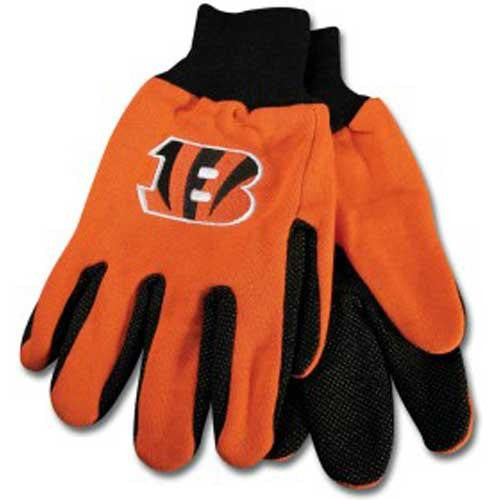Comfort and style meet with these gloves featuring the colors and logos of your favorite NFL team. These gloves are constructed of heavyweight cotton twill with rubber grips on the palms. Not only will these gloves keep your hands warm during the cold winter months but can also be used to keep your hands clean while doing yard & garden work. Made by McArthur Sports.