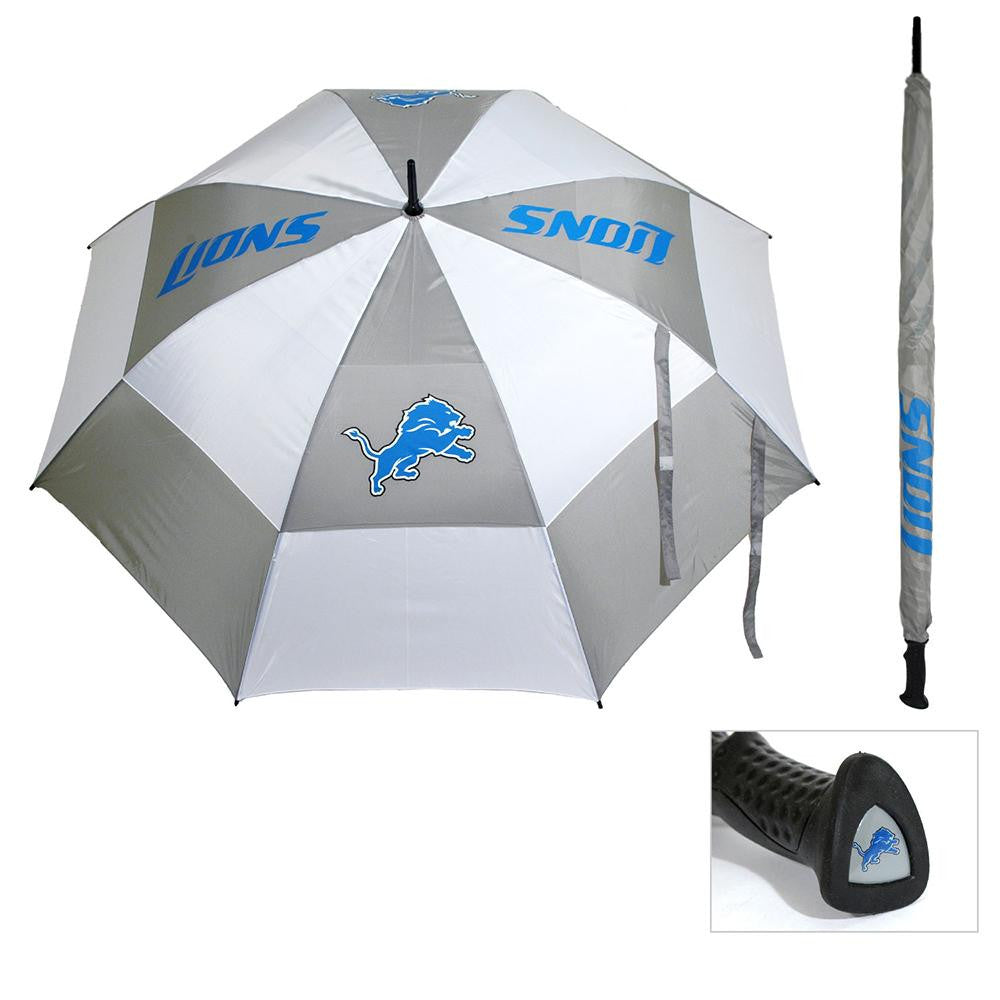 62 double-canopy umbrella with multi-colored panels and full color durable imprint. Includes an easy grip molded handle with team logo medallion and 1 touch auto-open button. Withstands strong winds.
