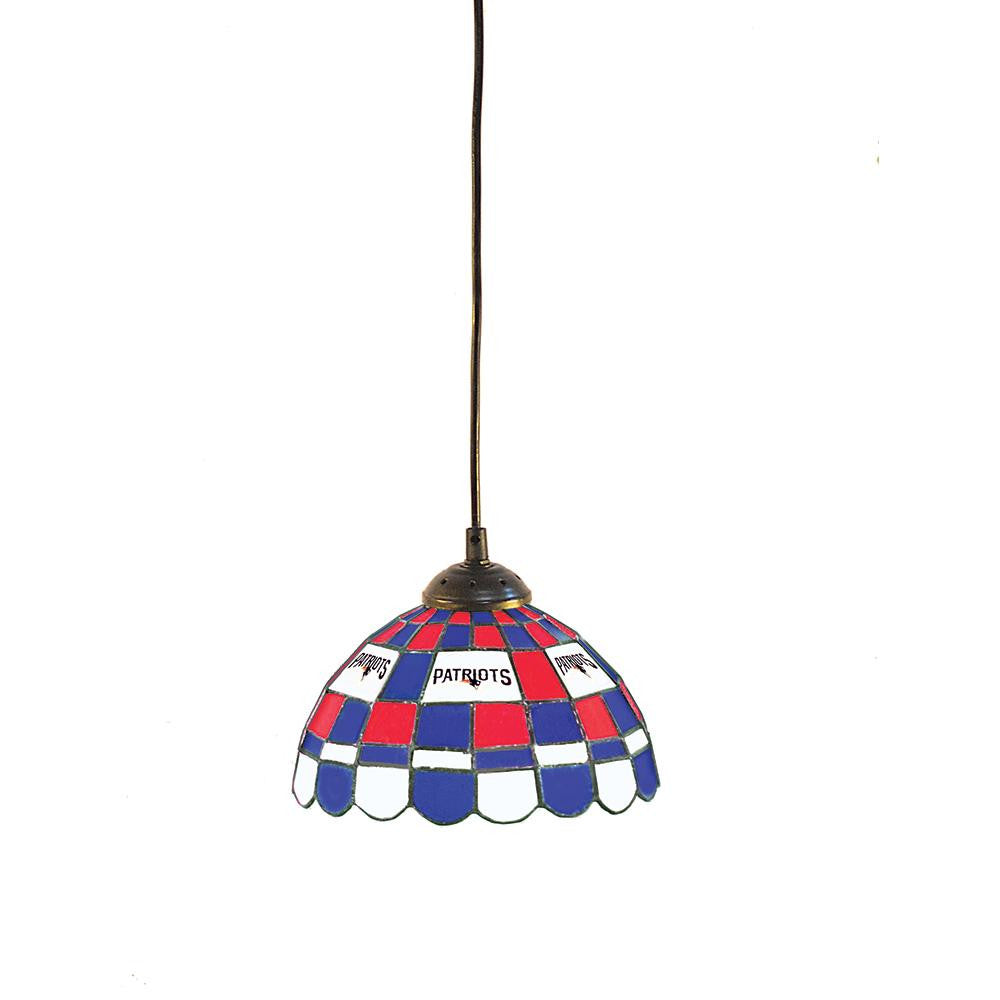 Hand cut and assembled using original copper foil technique mastered by Louis C. Tiffany. Your favorite team logo is silk screened printed in your brilliant team colors directly on the glass. Certified drop test rated. Convertible hard wire/swag set included. Measures 8in x 8in x 6.5in. Officially Licensed. Made in China