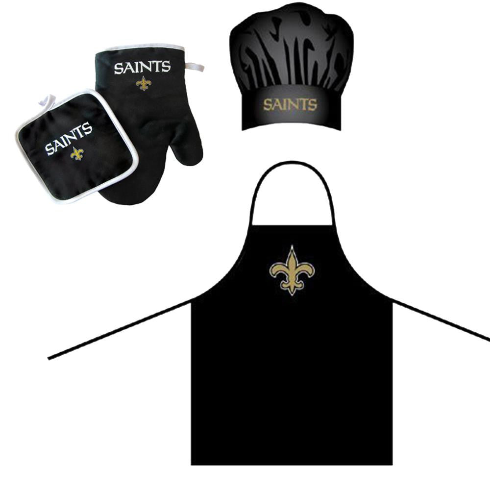 "New Orleans Saints NFL Barbeque Apron, Chef's Hat and Pot Holder Deluxe Set"