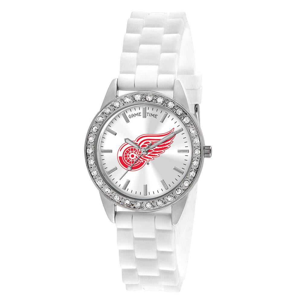 Hopefully your team's hotter than this frosty watch from Game Time! The Women's Frost Watch feature's an official team logo. Your team's color logo will stand out beautifully surrounded by the silver tone case and white silicone band. This is a must have for the female fan that's passionate about her sports team! Features: Stainless steel caseback. Silicone strap. Japan quartz movement. Sunray dial. Case size: 38mm. Water resistant to 3 ATM (99 ft.). Limited lifetime warranty. Officially licensed.
