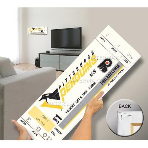 Officially licensed by the NHL Mega Tickets are cutting-edge wall art. They are created from authentic game tickets enlarged 500% printed on archival canvas and professionally stretch-mounted. Perfect for autographs. NHL and the NHL Shield are registered trademarks of the National Hockey League. All NHL logos and marks and NHL team logos and marks depicted herein are the property of the NHL and the respective teams and may not be reproduced without the prior written consent of NHL EnterprisesL.P. NHL 2011.All Rights Reserved. Overall Size: 11(W) x33(H) x0.75(D).