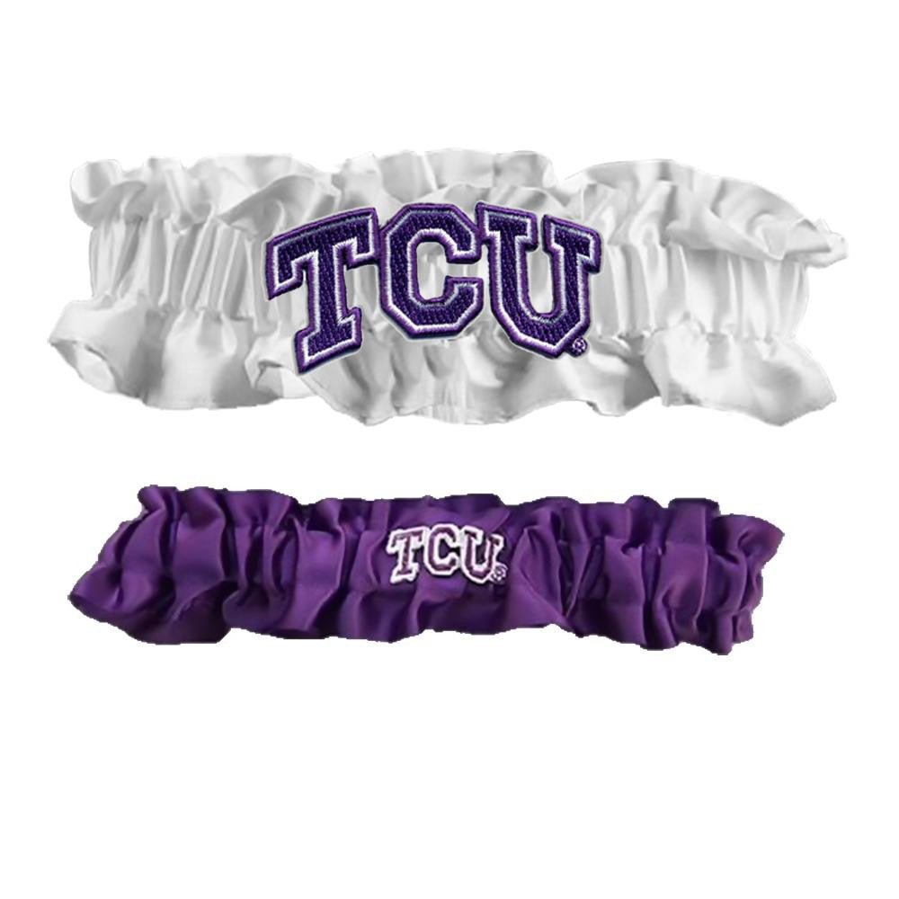 Texas Christian Horned Frogs Ncaa Garter Set "one To Keep One To Throw" (white-purple)