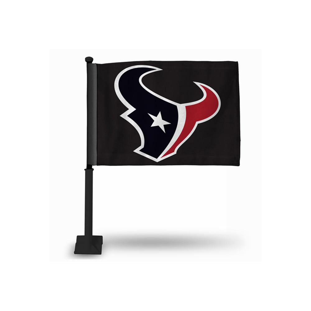Houston Texans NFL Car Flag (Black Pole) Two-sided car flag printed with your favorite team logo. Made with Superior material is UV fade resistant, 80 denier and 100% polyester and Double-stiched with Permacoretex-60 thread. Two-sided car flag printed with your favorite team logo All components made in the USA Superior material is UV fade resistant, 80 denier and 100% polyester Double-stiched with Permacoretex-60 thread The best way to show your team spirit on the way to the game