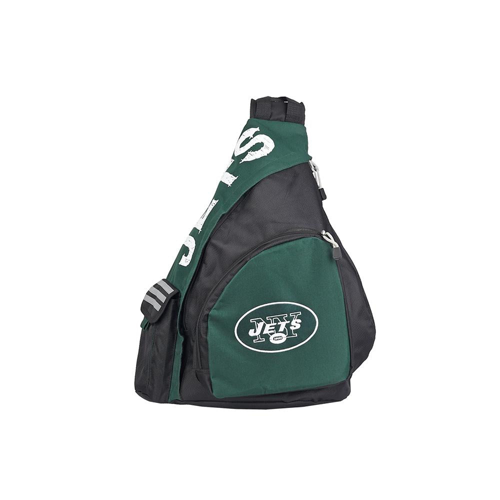 New York Jets NFL Leadoff Sling (Green/Black) Sling this bag over your back and head to the game! The Officially Licensed Leadoff Sling by The Northwest Company is perfect for fans on-the-go to show off their favorite team! With a large main compartment and a front zippered pocket with an organizer, you will always know where your belongings are stored. Hold your drink of choice in the elastic mesh beverage holder on one side and any small items in the other side slip pocket. With the padded strap and foam mesh padding on the back of this 20H x 12L x 7W sling, comfort will follow wherever you may be headed! 600D Polyester. Spot clean only. Spot clean only. 600D Polyester Elastic mesh beverage holder Padded strap and foam mesh padding on the back Officially Licensed