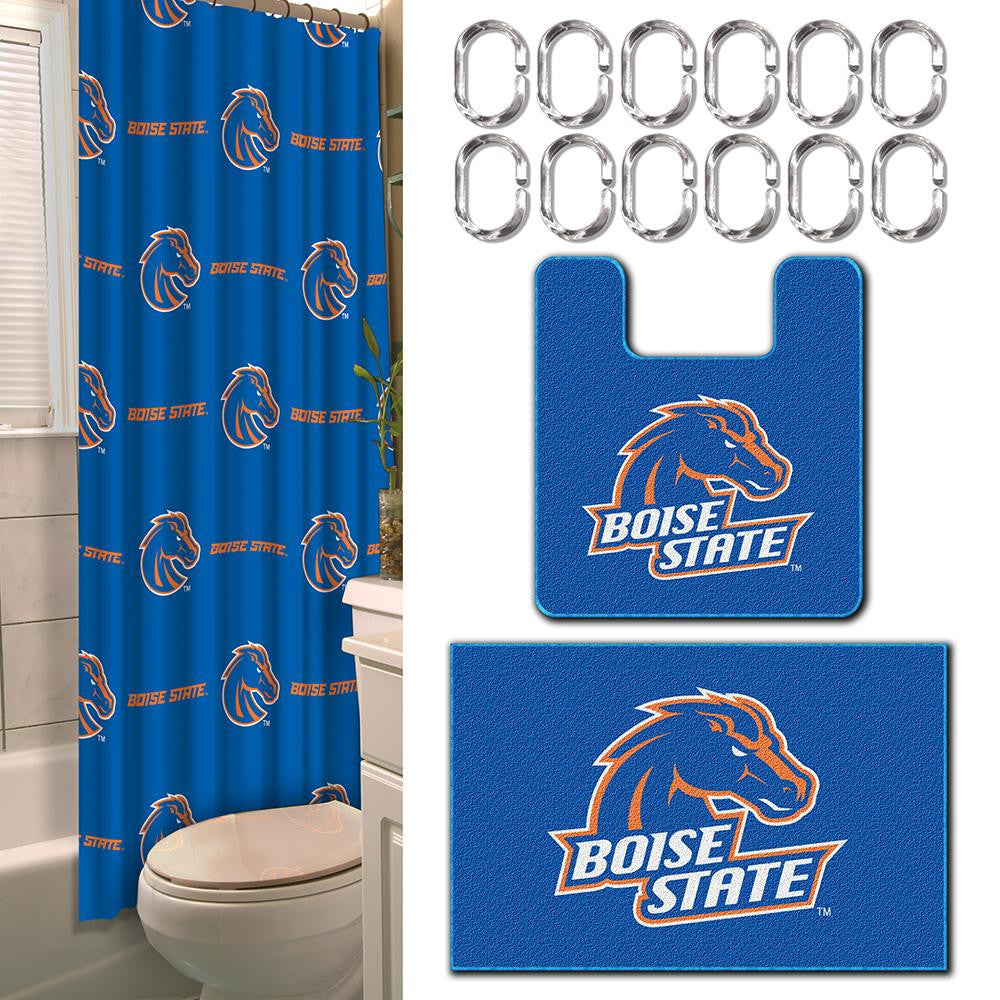 The official Collegiate 15-Piece Bath Set by The Northwest Company enables all college fans to transform their bathrooms into a real fan-zone! Color-coordinated to match your favorite team?s bold colors and decorated with the team logo this convenient value set is the perfect gift for any super fan! This all-in-one kit includes 12 Shower Curtain Rings 1 72?x 72? Shower Curtain and 2 Contour Bath Mats with Non-Skid Backing. Show off your team pride somewhere other than the bedroom! Shower curtain & bath mats are machine washable.
