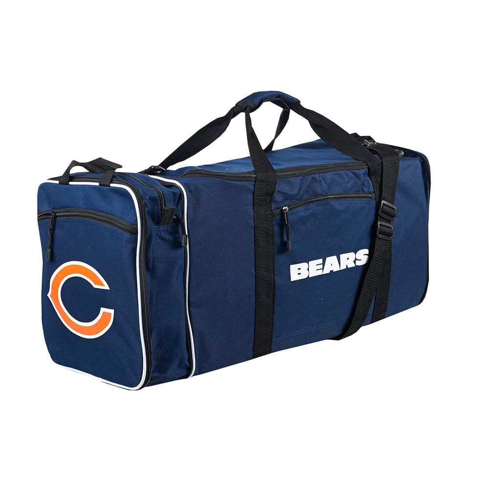 Chicago Bears NFL Steal Duffel Bag (Navy) This Officially licensed Duffel Bag by The Northwest Company is sure to be a Steal! Featuring your favorite team’s logo and colors, at full size, this duffel has front and side pockets along with a detachable and adjustable cross body, padded shoulder strap. Besides all your personal belongings fitting into the duffel bag at full size at 12H x 28L x 11”W, this duffel compacts down into 12 x 11 x 1.25 size for travel stowing and storage! All nylon zippers have metal heads. 600D Polyester. Spot clean only. Spot clean only. 600D Polyester Adjustable cross body, padded shoulder strap Front and side pockets Officially Licensed