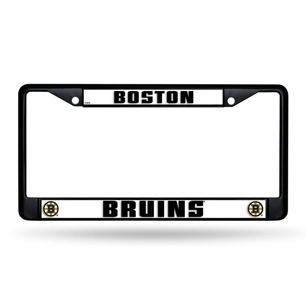Boston Bruins NHL Black License Plate Frame Show everyone who you root for with this black license plate frame! Features your favorite team's name and logo, and has pre-drilled holes for easy mounting. The chrome frame is very durable and will last for a long time! Black license plate frame with team name and logo Easy to mount around just about any license plate Pre-Drilled Holes Zinc metal frame resistant to the elements Officially Licensed
