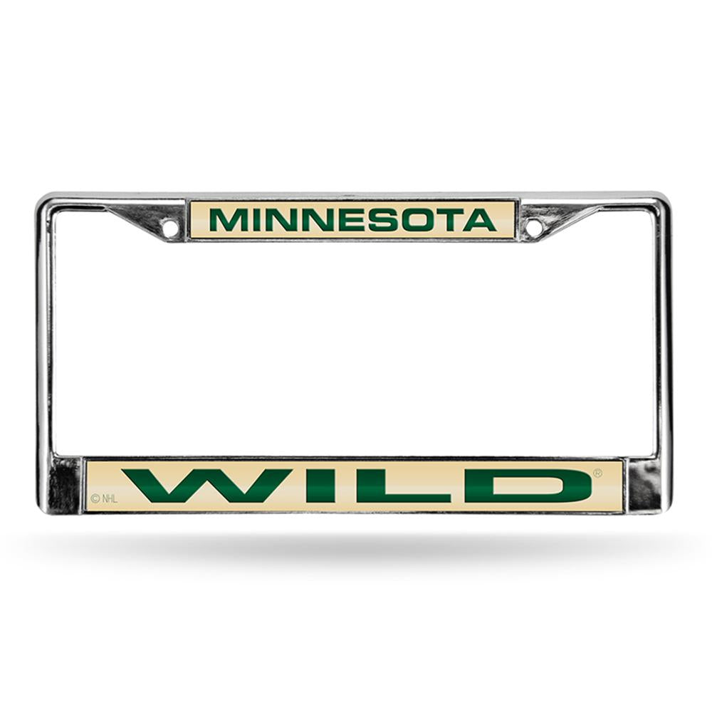 Minnesota Wild NHL Chrome Laser Cut License Plate Frame Show the world who your favorite team is with this laser cut chrome license plate frame. Features your teams name laser cut into a colored acrylic insert. The pre-drilled holes make for easy mounting. The chrome frame is very durable and will last for a long time! A great gift for a fan. Made by Rico. Chrome License Plate Frame with Laser-Cut Acrylic Insert Easy to Mount Around License Plate Zinc Metal Frame Resistant to the Elements Team Name Laser-Cut into Acrylic and Hand-Assembled Officially Licensed
