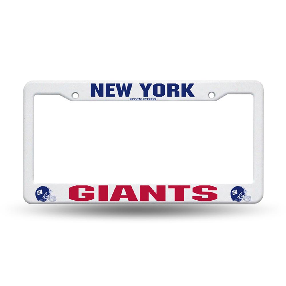 New York Giants NFL Plastic License Plate Frame A great gift for your favorite driver and sports fan! Pre-drilled holes allow frame to be easily attached to any car or truck. Frame fits perfectly over standard 12-inch by 6-inch license plates. Made with impact resistant plastic Pre-drilled holes allow frame to be easily attached to any car or truck Frame fits perfectly over standard 12-inch by 6-inch license plates Made with impact resistant plastic A great gift for your favorite driver and sports fan! Officially Licensed