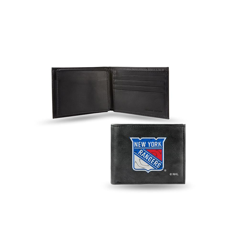 New York Rangers NHL Embroidered Billfold Wallet A team logo billfold makes a perfect gift for that big fan in your life, or a nice treat for yourself. Quality construction will last. Genuine leather billfold embroidered with team logo Genuine cowhide black leather ID window and credit card pockets Team logo embroidered with quality stitching