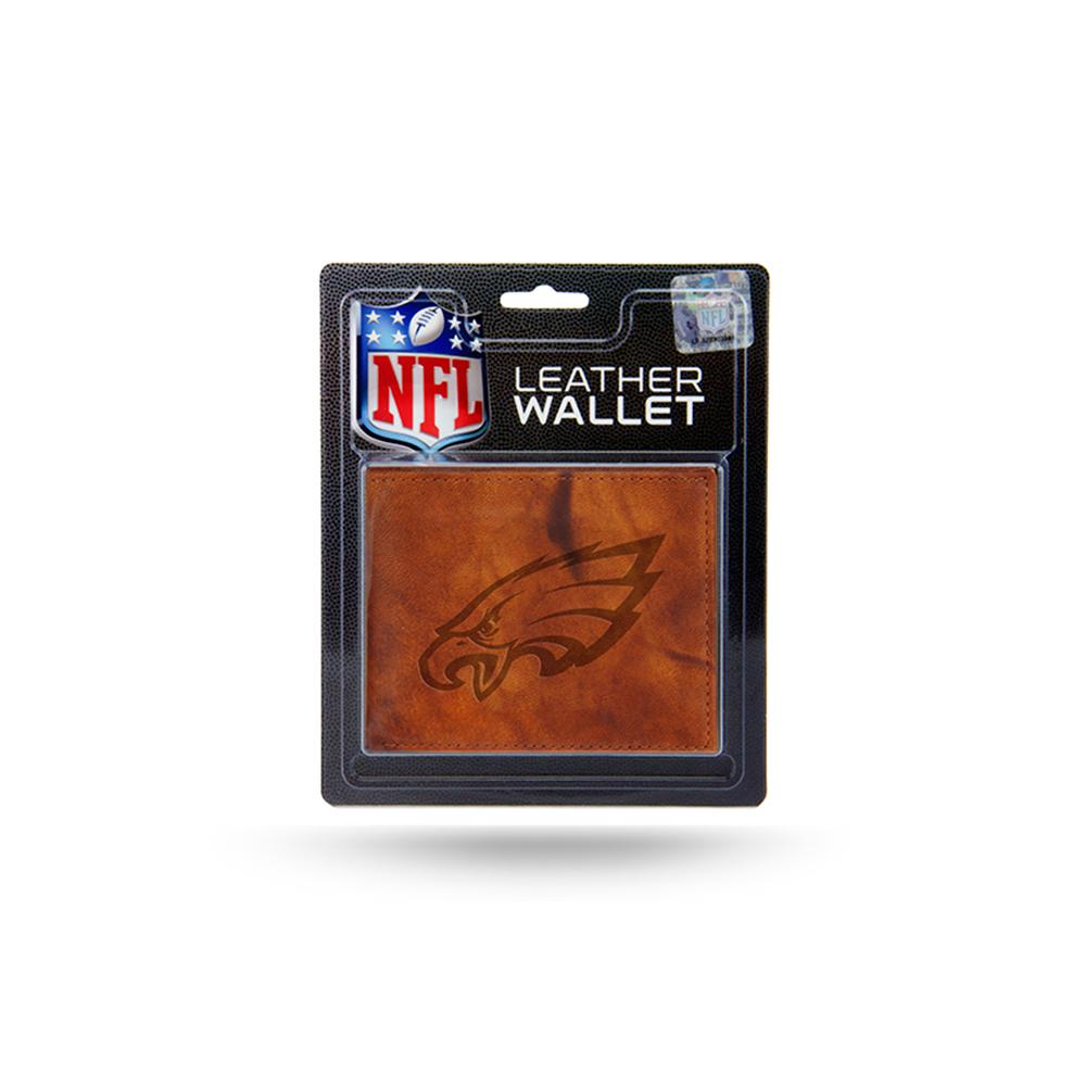 Philadelphia Eagles NFL Manmade Leather Billfold You can store your money, credit cards and important business cards in this embossed leather billfold wallet from Rico. The genuine leather wallet holds 4 credit cards and includes a plastic picture insert, so you can show off your favorite pictures from the game! It's embossed with the team name and logo on the front.Officially licensed by the NFL and the Pittsburgh Steelers. Leather billfold wallet Holds 4 credit cards Clear plastic identification slot Team name and logo embossed on the front Includes a plastic picture insert