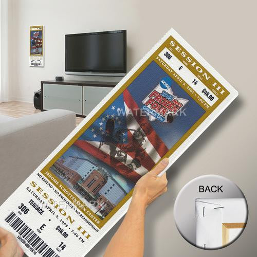 Officially licensed by CLC's College Vault Mega Tickets are cutting-edge wall art. They are created from authentic game tickets enlarged 500% printed on archival canvas and professionally stretch-mounted. Perfect for autographs. Overall Size: 12(W) x31(H) x0.75(D).