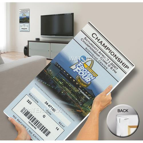 Officially licensed by CLC's College Vault Mega Tickets are cutting-edge wall art. They are created from authentic game tickets enlarged 500% printed on archival canvas and professionally stretch-mounted. Perfect for autographs. Overall Size: 15(W) x30(H) x0.75(D).